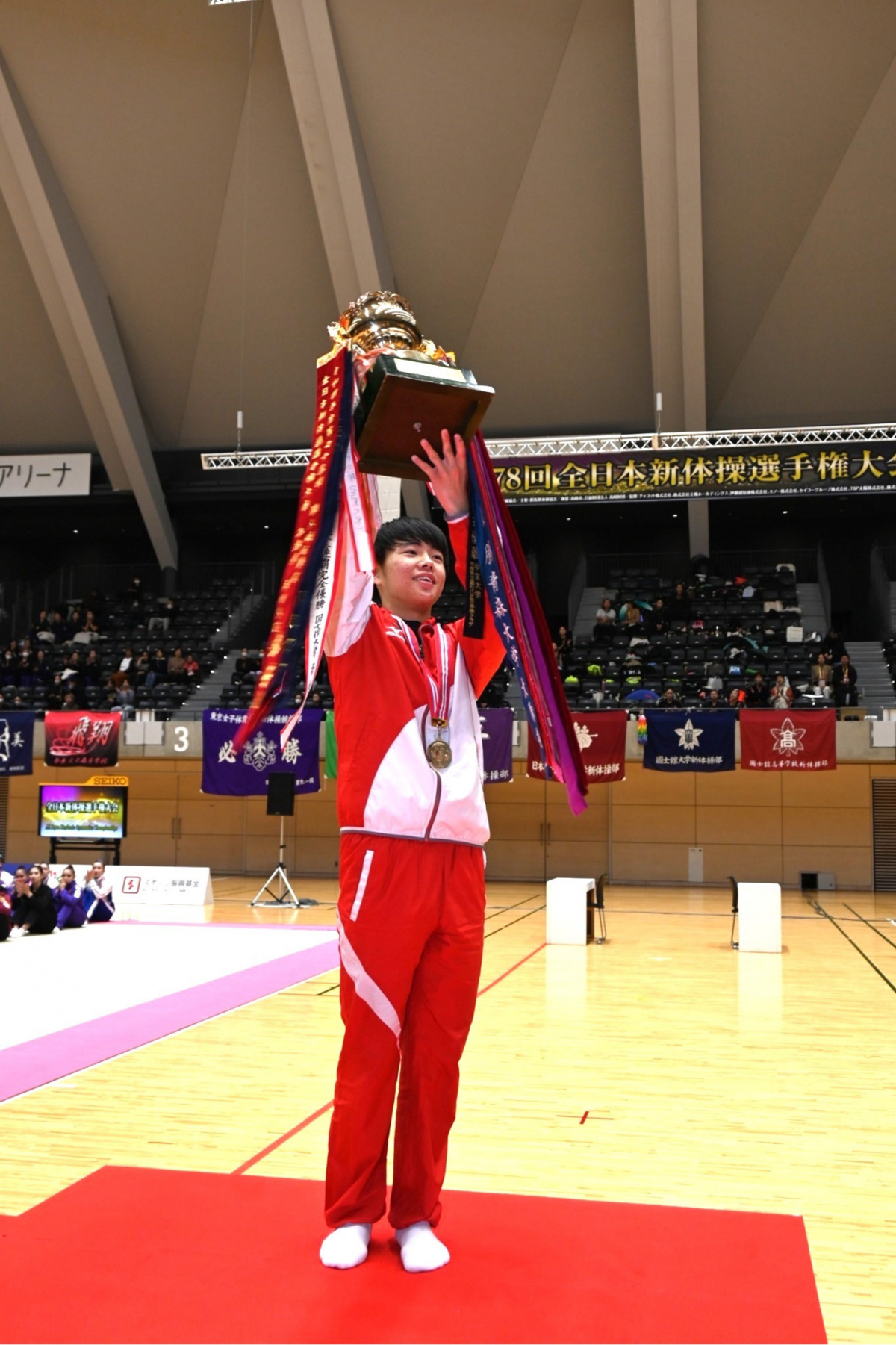 本校の新体操部に所属している村山颯さん(2年8組)が、第78回全日本新体操選手権大会 個人総合において史上初となる “高校生での個人総合優勝” を達成いたしました。